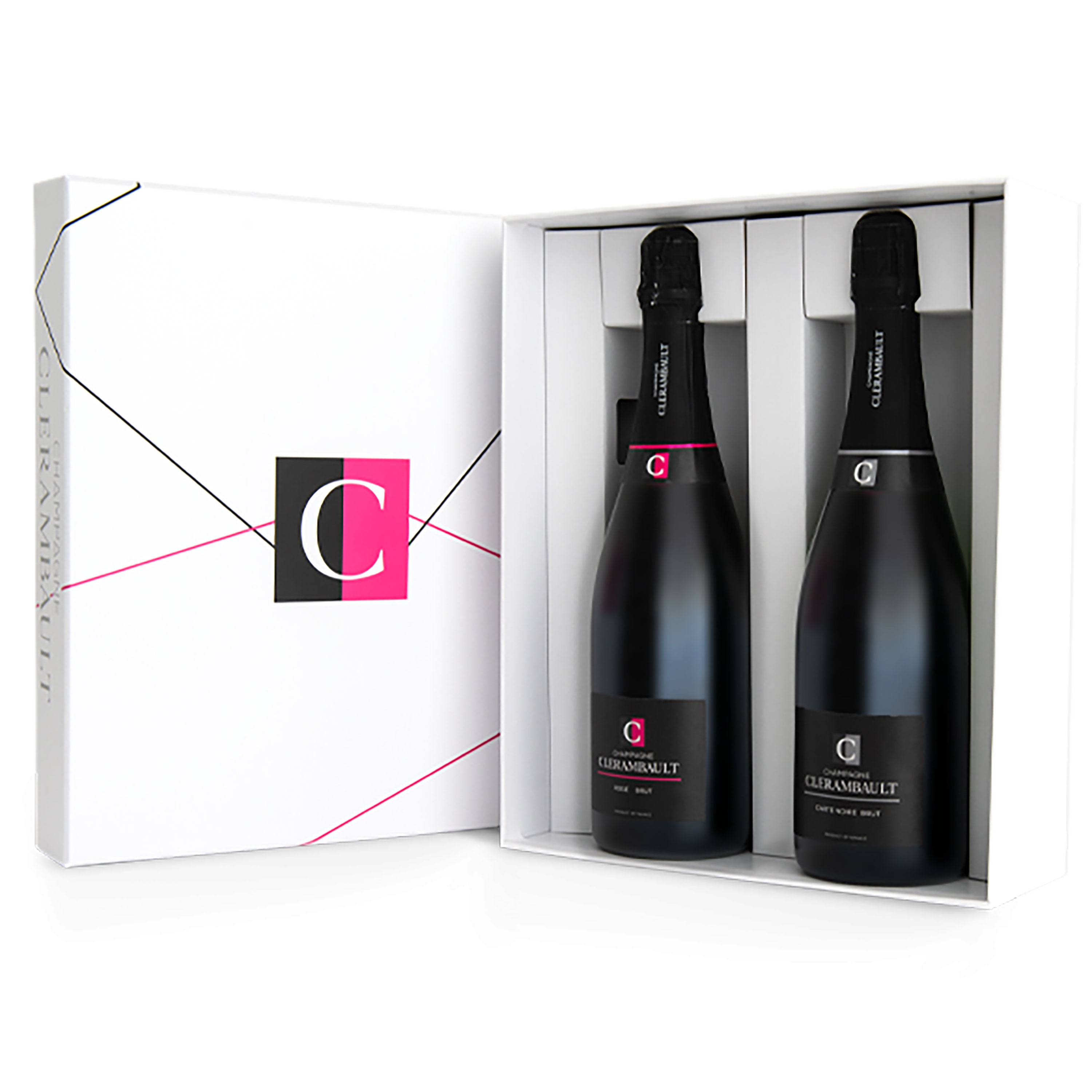 1 bouteille de cuvée Carte Noire Brut et 1 bouteille de cuvée Rosé Brut présentées dans leur coffret.